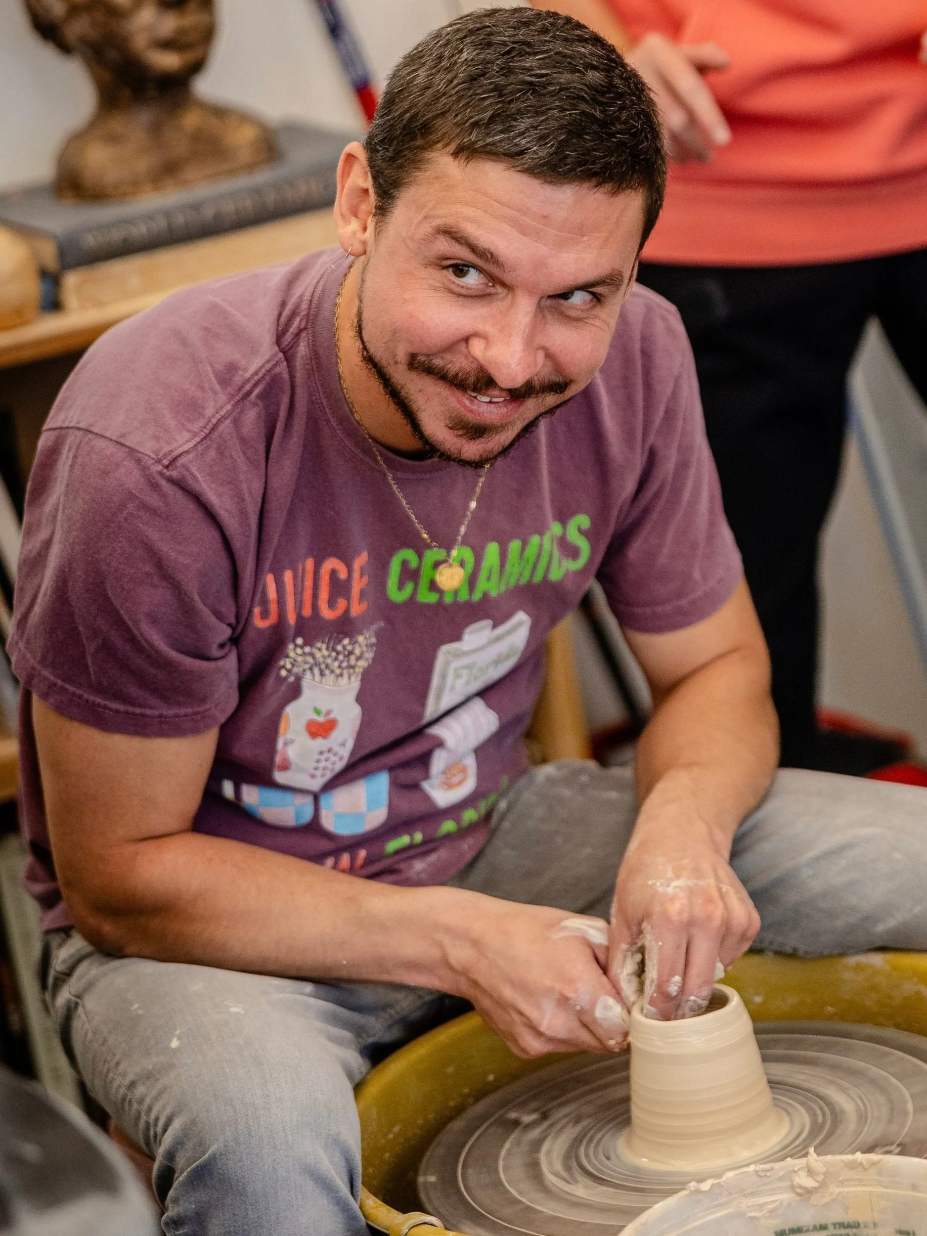 Conor Pickett is a ceramic artist and educator who has been teaching and building community in local studios for the better part of the last 15 years. Through a focus on student voice and choice, Conor’s teaching is founded in playfulness and joy. He is known for his clarity of instruction and pedagogy for beginner wheel throwers.